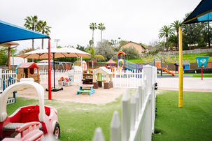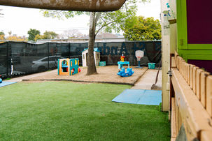 A secure and engaging environment where toddlers enjoy sandbox play, turf areas, and a variety of age-appropriate outdoor toys.